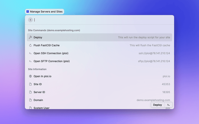 $ git clone https://github.com/ploi-deploy/ploi-raycast.git