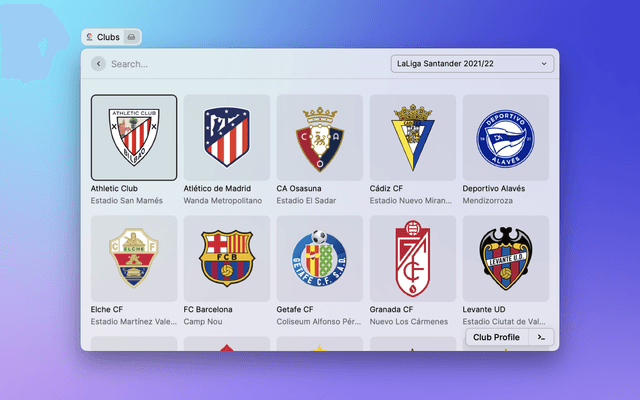 All the information of LaLiga Santander, LaLiga SmartBank, and Primera División Femenina: schedules, results, standings, news, statistics, and much more in Raycast