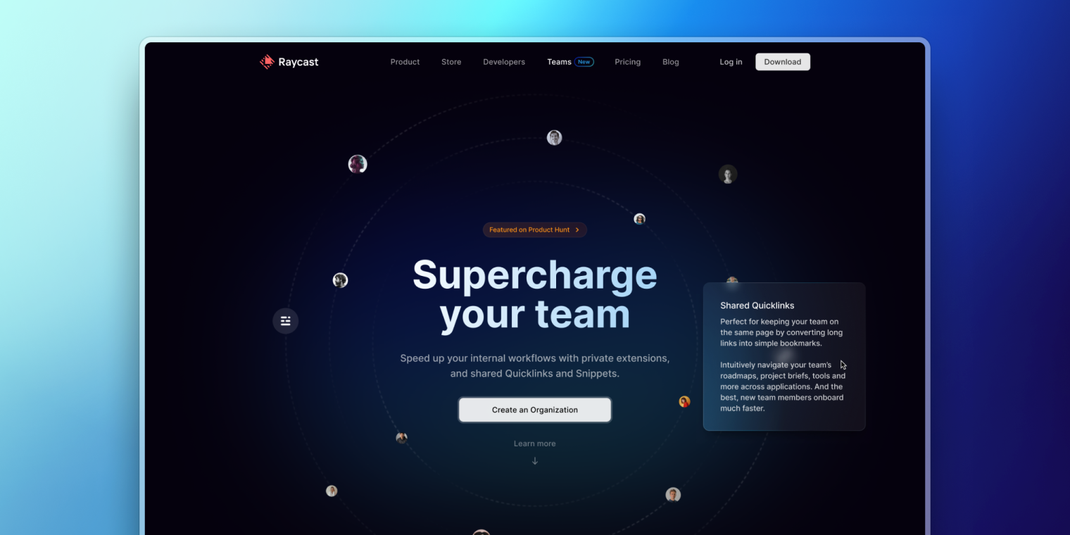 At the midway stage of Launch Week, we officially launched Raycast for Teams out of beta, allowing companies to start using Raycast in their teams. Our launch started on Product Hunt, where we reached the 4th Product of the Day with 500 upvotes!