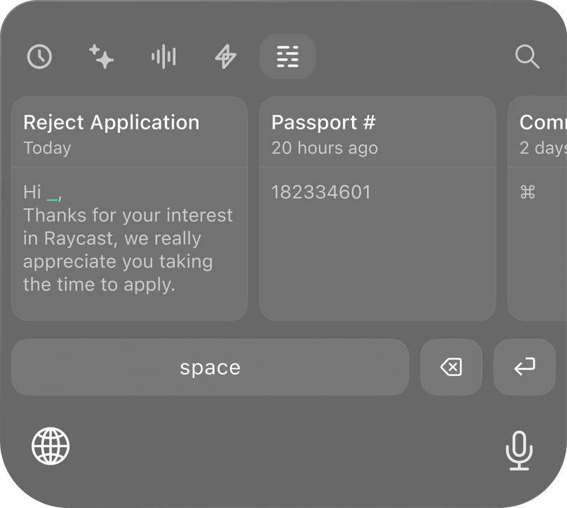 Designed to work well beyond the app icon. Raycast is integrated into many iOS features.