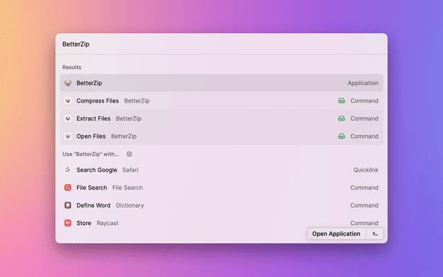 Compress and extract selected items in Finder with BetterZip via Raycast.